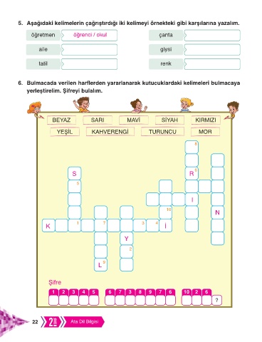 6. Bulmacada verilen harflerden yararlanarak kutucuklardaki kelimeleri bulmacaya