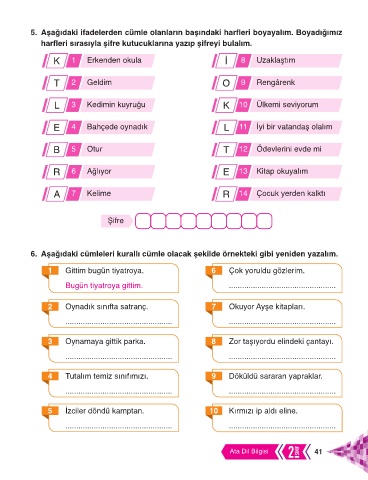 6. Aşağıdaki cümleleri kurallı cümle olacak şekilde örnekteki gibi yeniden yazalım.