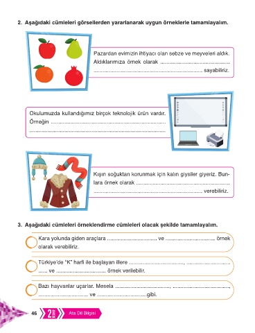 2. Aşağıdaki cümleleri görsellerden yararlanarak uygun örneklerle tamamlayalım.