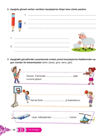 3. Aşağıdaki görsellerden yararlanarak noktalı yerleri karşılaştırma ifadelerinden uy-