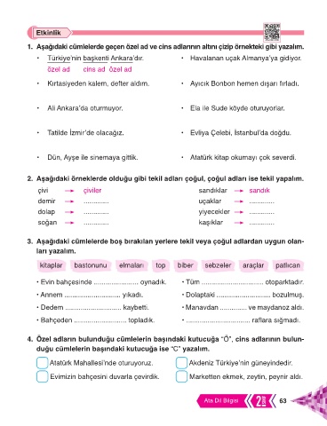 2. Aşağıdaki örneklerde olduğu gibi tekil adları çoğul, çoğul adları ise tekil yapalım.