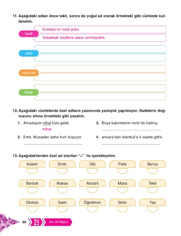13. Aşağıdakilerden özel ad olanları “✓” ile işaretleyelim.