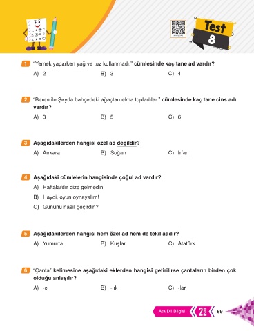 4 Aşağıdaki cümlelerin hangisinde çoğul ad vardır?
