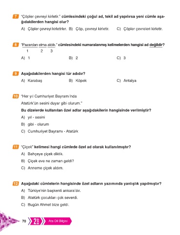 7 “Çöpler çevreyi kirletir.” cümlesindeki çoğul ad, tekil ad yapılırsa yeni cümle aşa-