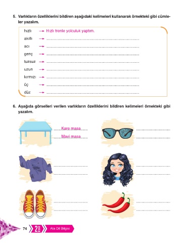 5. Varlıkların özelliklerini bildiren aşağıdaki kelimeleri kullanarak örnekteki gibi cümle-