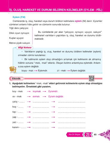 1. Aşağıdaki kelimelere “-mek, -mak” ekleri getirerek kelimelerin eylem olup olmadığını
