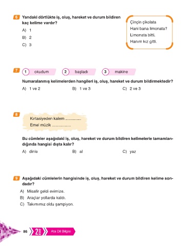 6 Yandaki dörtlükte iş, oluş, hareket ve durum bildiren