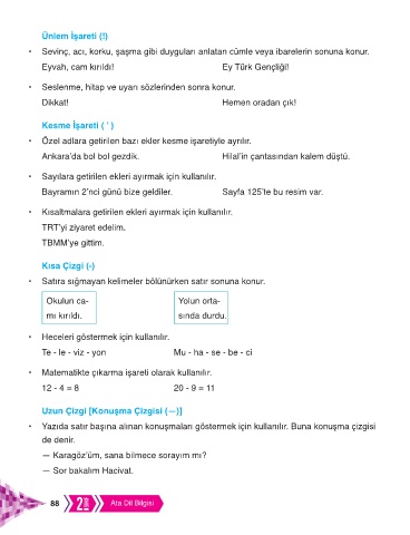 • Satıra sığmayan kelimeler bölünürken satır sonuna konur.