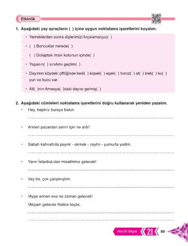 2. Aşağıdaki cümleleri noktalama işaretlerini doğru kullanarak yeniden yazalım.