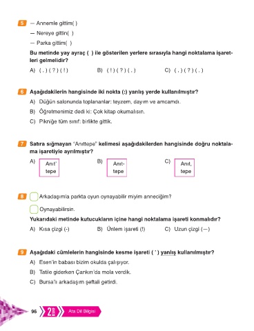 7 Satıra sığmayan “Anıttepe” kelimesi aşağıdakilerden hangisinde doğru noktala-