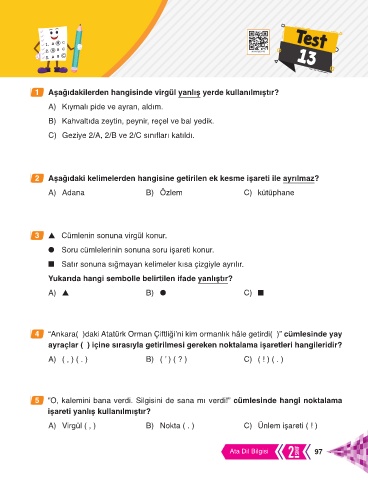 1 Aşağıdakilerden hangisinde virgül yanlış yerde kullanılmıştır?