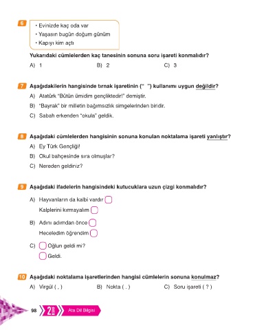 8 Aşağıdaki cümlelerden hangisinin sonuna konulan noktalama işareti yanlıştır?
