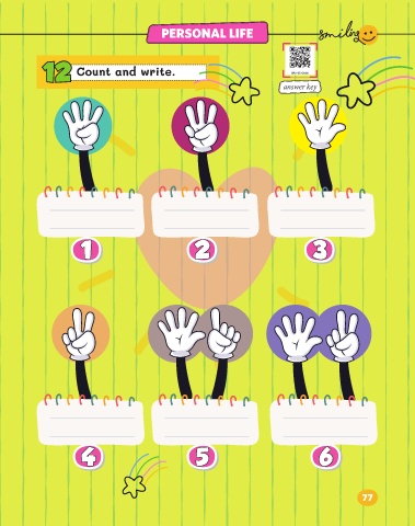 PERSONAL LIFE 12 12 Count and write. answer key 1 1 2 2 3 3 4 4 5 5 6 6 77