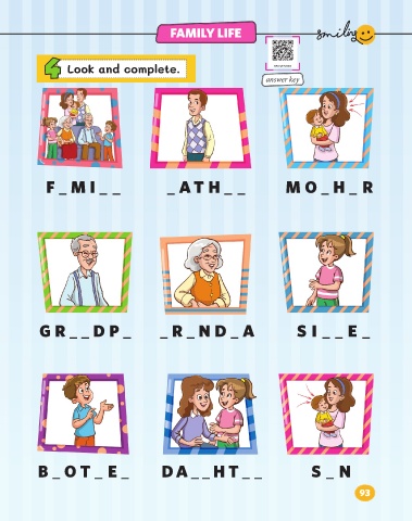 FAMILY LIFE 4 4 Look and complete. answer key F_ M I _ _ _ A T H _ _ MO_H _ R G R _ _DP _ _R_ND _ A S I __E _ B_ O T _ E _ D A _ _H T _ _ S_ N 93