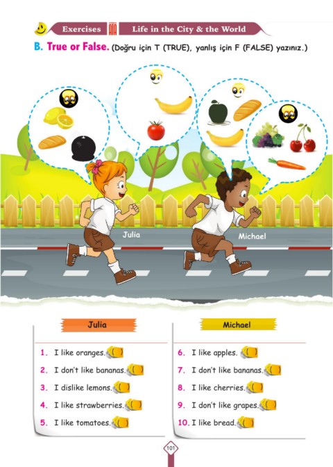 4. I like strawberries. ( ) 9. I don’t like grapes. ( )