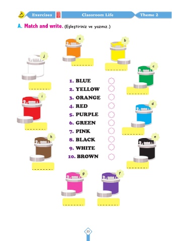 Exercises Classroom Life Theme 2 A. Match and write. (Eşleştiriniz ve yazınız.) 23
