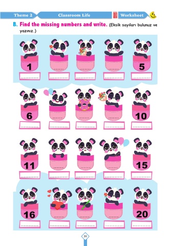 B. Find the missing numbers and write. (Eksik sayıları bulunuz ve