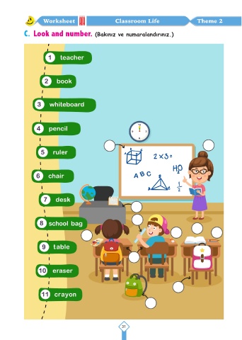 Worksheet Classroom Life Theme 2 C. Look and number. (Bakınız ve numaralandırınız.) 31