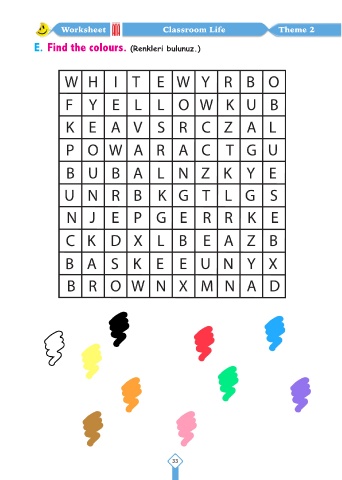 Worksheet Classroom Life Theme 2 E. Find the colours. (Renkleri bulunuz.) 33