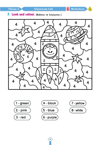 Theme 2 Classroom Life Worksheet F. Look and colour. (Bakınız ve boyayınız.) 34