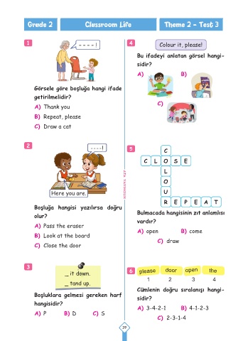 Grade 2 Classroom Life Theme 2 - Test 3