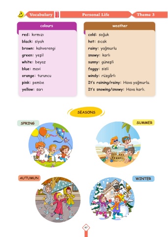 pink: pembe It’s raining/rainy: Hava yağmurlu.