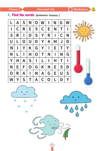 Theme 3 Personal Life Worksheet C. Find the words. (Kelimeleri bulunuz.) 54