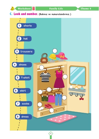 Worksheet Family Life Theme 4 C. Look and number. (Bakınız ve numaralandırınız.) T 71