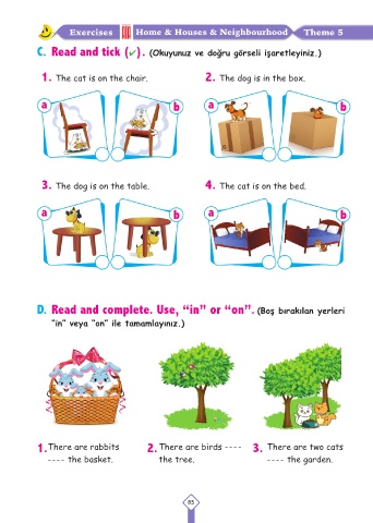 D. Read and complete. Use, “in” or “on”. (Boş bırakılan yerleri