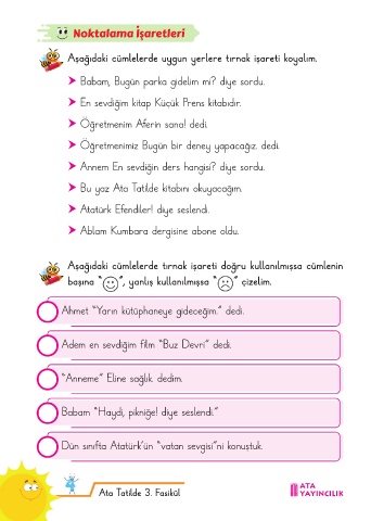Aşağıdaki cümlelerde uygun yerlere tırnak işareti koyalım.