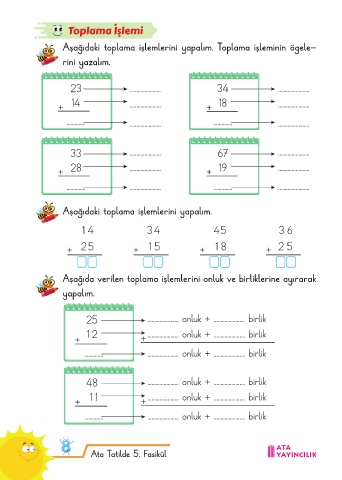 Aşağıda verilen toplama işlemlerini onluk ve birliklerine ayırarak