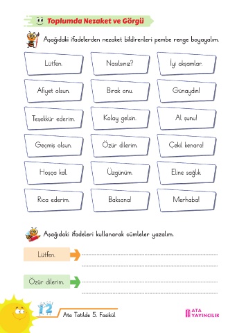 Aşağıdaki ifadelerden nezaket bildirenleri pembe renge boyayalım.