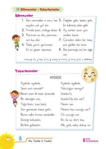 2. Fırında pişer, mideye düşer. 6. Ay varken açar, gün