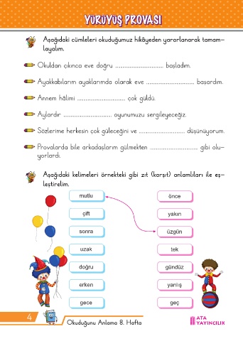 Aşağıdaki kelimeleri örnekteki gibi zıt (karşıt) anlamlıları ile eş-