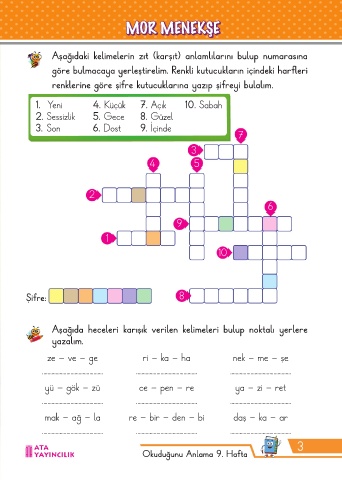 göre bulmacaya yerleştirelim. Renkli kutucukların içindeki harfleri