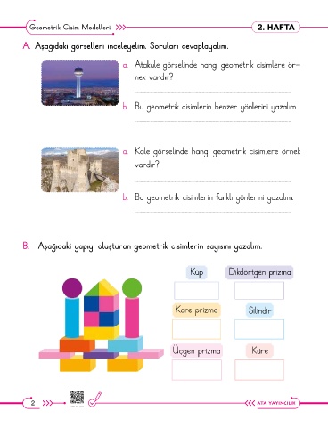 B. Aşağıdaki yapıyı oluşturan geometrik cisimlerin sayısını yazalım.