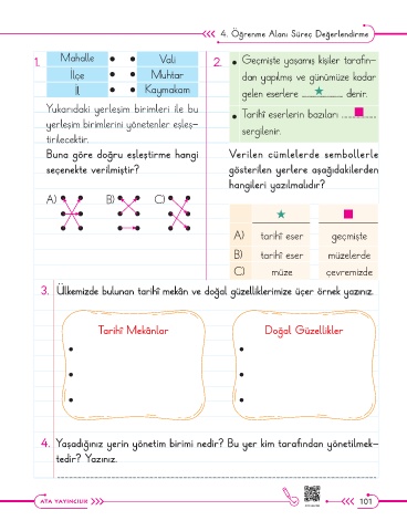 yerleşim birimlerini yönetenler eşleş- • • sergilenir.