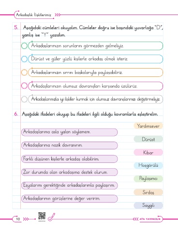 5. Aşağıdaki cümleleri okuyalım. Cümleler doğru ise başındaki yuvarlağa “D”,