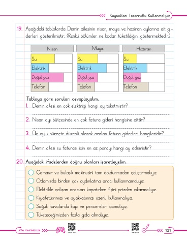19. Aşağıdaki tablolarda Demir ailesinin nisan, mayıs ve haziran aylarına ait gi-