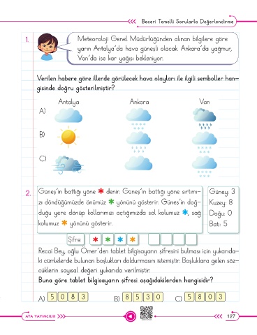 kolumuz ✱ yönünü gösterir. Batı: 5