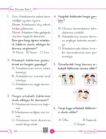 ona karşı hoşgörülü davranırım. B) Arkadaşlarımızı olumsuz davra-