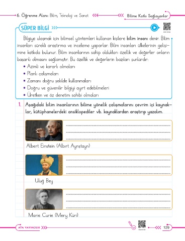 6. Öğrenme Alanı: Bilim, Teknoloji ve Sanat Bilime Katkı Sağlayanlar