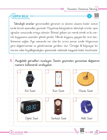 5. Aşağıdaki görselleri inceleyim. Saatin geçmişten günümüze değişimini