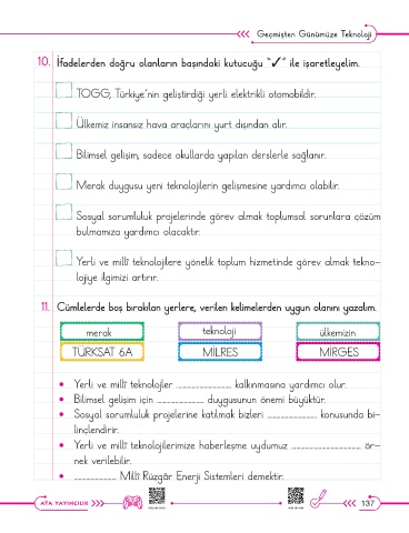 10. İfadelerden doğru olanların başındaki kutucuğu “✓” ile işaretleyelim.