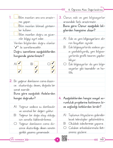 Doğru işaretleme aşağıdakilerden zı yazılabiliyordu, yeni bilgisa-
