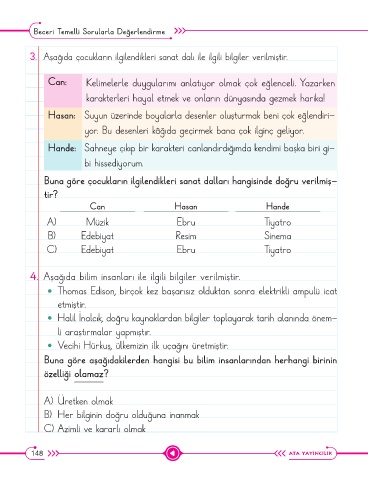 4. Aşağıda bilim insanları ile ilgili bilgiler verilmiştir.
