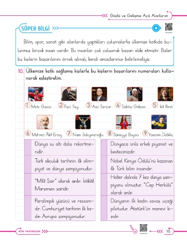 1 Mete Gazoz 2 Fazıl Say 3 Aziz Sancar 4 Sabiha Gökçen 5 İdil Biret
