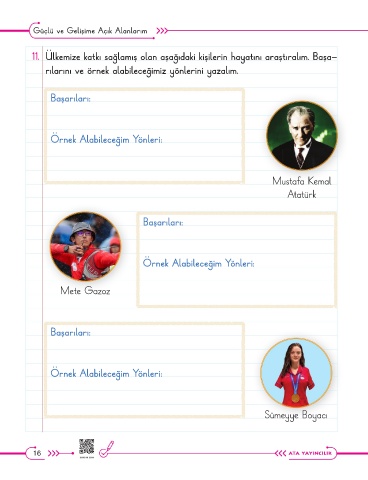 11. Ülkemize katkı sağlamış olan aşağıdaki kişilerin hayatını araştıralım. Başa-