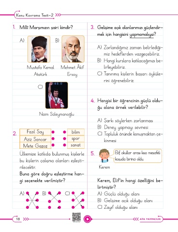 1. Millî Marşımızın şairi kimdir? 3. Gelişime açık alanlarımızı güçlendir-