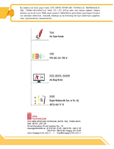 Bu ki ta bın her tür lü ya yın hak kı ATA DERS KİTAPLARI YA YIN CI LIK, MAT BA ACI LIK,